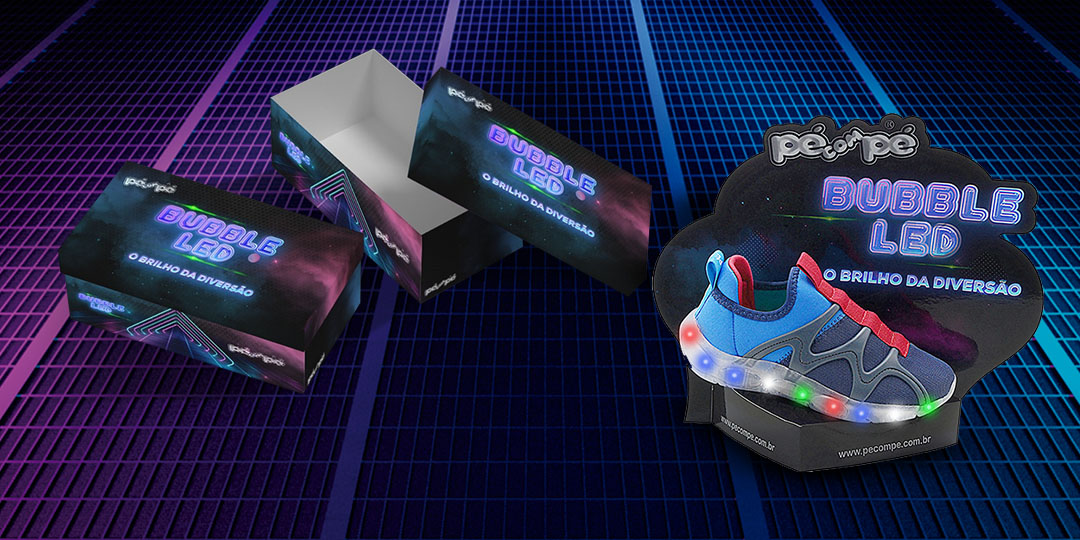 Com 36 anos de expertise e história no mercado, a Pé com Pé desenvolveu o Bubble Led com a experiência completa de momentos especiais para as crianças usarem o dia todo.