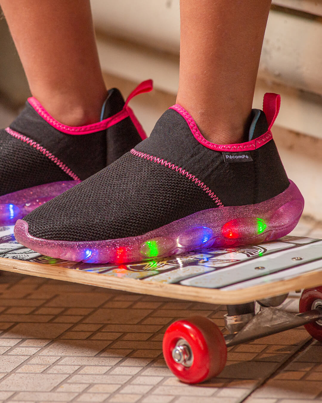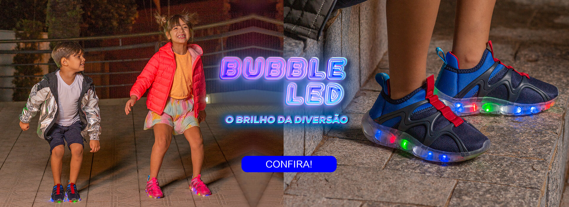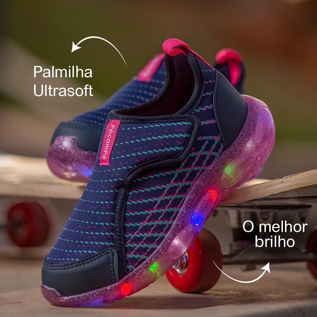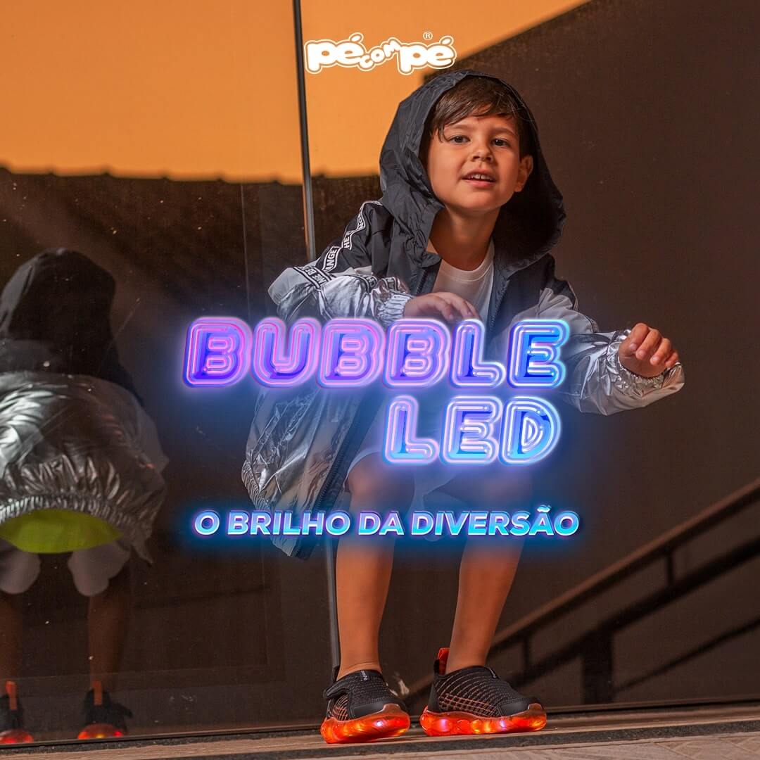 Com fitas de leds de alta qualidade e muitas cores, o Bubble Led tem o melhor brilho e a maior durabilidade do mercado. Vai ser impossível tirar dos pés, como todos os calçados Pé com Pé!